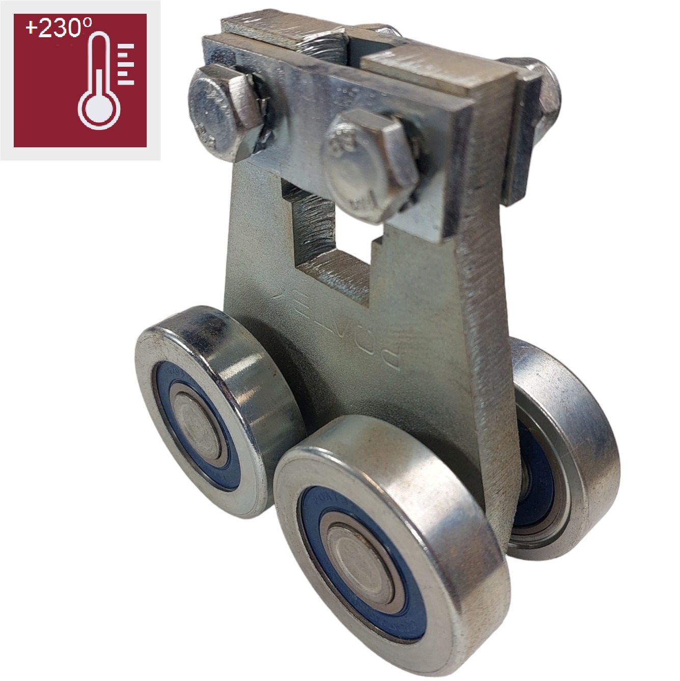 Высокотемпературные тележки системы 211 выполнены с креплением под болт для подвешивания груза или крепления. Болт в комплектацию не входит.